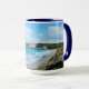 La photo est une vue magnifique d'une plage de sable blanc, eau de mer bleu d'eau et des falaises montantes