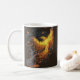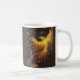 Un phénix se lève dans une vague balayée par le vent de feuilles d'automne, fermement contre l'image du merle dans le ciel. Par Paxdomino