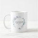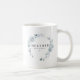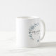 Cette tasse de café pour la fête de mariage présente des fleurs élégantes bleu poussiéreux et blanches ainsi qu'une police minimaliste élégante. C'est parfait pour n'importe quelle fête de mariage