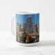 Design unique de tasse avec le centre-ville d'Austin photographié à la tombée de la nuit avec le logo des couleurs du drapeau du Texas.