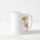 Fall is In the Air Boho Personnalisé Aquarelle design avec un thème décontracté comprenant une jeune femme, des fleurs, des feuilles d'automne et des couleurs saisonnières. Personnalisez avec votre nom sur un côté de la tasse à café.