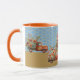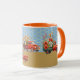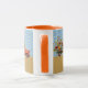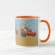 Mug avec des camions rouges et des fleurs sur un ciel de ruche et une plate-forme bronzante. Merci à Creative Fabrica pour certains des éléments du design.