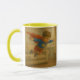 Mug avec un enfant déguisé en super-héros qui s'amuse à faire semblant de voler dans le salon, les bras tendus vers l'avant comme s'il traversait les airs, créant une scène pleine d'imagination, de joie et de rires dans un univers de jeu intérieur.
