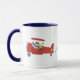 Un pilote de garçon vole par le ciel sur son avion rouge.