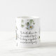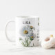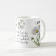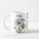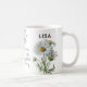 Cette tasse de fleurs de naissance personnalisée est une excellente idée cadeau pour ceux nés au mois d'avril. Les marguerites sont affichées sur les deux côtés de la tasse où un nom peut être ajouté au-dessus de l'illustration. Au centre du script de la tasse est représenté le texte, "La fleur de naissance pour le mois d'avril est la marguerite, un symbole d'innocence et de pureté." Ce script peut être customisé avec le texte de votre choix.
