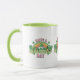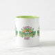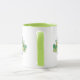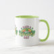 Une tasse avec une image sur le thème de la Saint Patrick. Un design de style grunge rétro qui dit : Avoir un jour de chance. Avec un arc en ciel coloré derrière. Mots écrits dans une grosse ambiance arrondie de style rétro. Couleurs rose et verte.