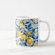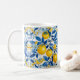 💛 💙 Mug à café avec de superbes Azulejos aux citrons motif à motifs floraux étonnants avec bleu et jaune, dans le style de l'Azulejo espagnol, motifs traditionnels, couleurs audacieuses et motifs, inspirés du folklore,