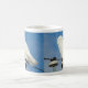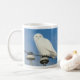 Boue des neiges Mug. A mon avis le plus beau des rapaces, le hibou neigeux. Encadré par un ciel d'hiver bleu et froid, ce magnifique oiseau prédateur avec ses immenses talons cherche des proies à partir d'un poteau électrique.