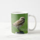 Tasse avec photo de Hibou des terriers. Quand j'étais enfant, il y a environ quarante ans, ces petits hiboux mignons étaient trouvés partout dans les prairies du sud-est de l'Alberta, au Canada. Ils ne creusent pas réellement eux-mêmes, ils reprennent des trous de blaireaux abandonnés. Malheureusement, la contamination par le DDT dans les années soixante-dix et quatre-vingt et la perte de zones de nidification dues à l'agriculture ont fait d'eux un spectacle rare.