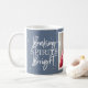 Typographie blanche festive "Baking Spirits Bright", tasse photo bleue de vacances.