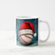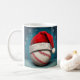 Bal de baseball Rouge Père Noël Nom café de Noël Mug. Le design a 2 balles de baseball avec un chapeau de Santa rouge sur un arrière - plan d'hiver avec des flocons de neige blancs. Personnalisez avec votre nom. Idéal pour quelqu'un qui aime le sport.
