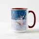 La petite ballerine dans son costume blanc de reine de neige danse parmi les flocons de neige tandis qu'une étoile brille vers le bas du ciel bleu profond sur cette tasse qui serait grande pour Noël ou n'importe quand.