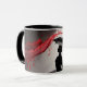 Sur un arrière - plan rouge, il y a une silhouette élégante d'une ballerine qui tient délicatement un parapluie dans sa main, exubérant grâce et charme. Des couleurs contrastées mettent en évidence le mouvement dynamique des personnages, créant une atmosphère unique de mystère et d'expression artistique.