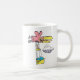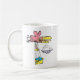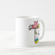 Cette Mug à café à air chaud Retro Bird est dotée d'un ballon à oiseau rose volant et de passagers de mignons oiseaux bleus le long de la promenade. Un cadeau branché et coloré pour les amateurs d'oiseaux. Main dessinée et dessinée par Quirkytown Creative. Image ©2024 Doug Davis. www.zazzle.com/store/QuirkyTownCreative