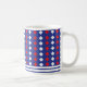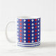 Mug à café blanc Diamant Rouge moderne. Motif de bande Diamond Rouge Blanc sur Arrière - plan Bleu.