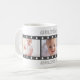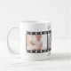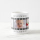Garde-photos personnalisée. Célébrez vos moments les plus chers avec cette tasse photo personnalisable en bande de film. Doté d'un design unique inspiré de bobine de film, ce mug vous permet de présenter trois de vos photos préférées encadrées dans une mise en page cinématographique, ainsi que votre texte personnalisé ci-dessus et ci-dessous. Parfait comme cadeau de coeur pour les parents, les grands-parents, ou toute personne qui aime leur café avec un côté de souvenirs.