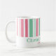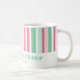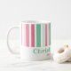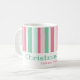 Le rose et le vert sont des couleurs si appétissantes. Elles forment une excellente combinaison pour Noël. Ces bandes rétro vives sont très amusantes sur cette tasse de café des fêtes. Notre texte mentholé "Joie de Noël" est modifiable. Assurez-vous de changer les noms et la date d'exemple pour ceux que vous voulez.
