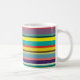 Cette tasse a un design de bandes horizontales dans les tons bleu, vert, marron, violet, rouge, jaune, orange et rose.