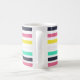 Un coloré peut refroidir avec un motif rayé. La tasse blanche présente des rayures horizontales noires, roses, jaunes et turquoise. Il est conçu pour s'adapter à une boîte de boisson standard.