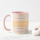 Mug avec motif à rayures lumineuses tendance et personnalisée avec votre nom. Trouvez plus dans notre collection.