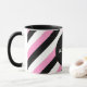 Tasse à café Black, White et Pink Stripes conçue avec des rayures diagonales de noir, blanc et rose. Fabrique un grand cadeau de chauffage au foyer ou le rembourrage. Par https://www.zazzle.com/store/celestesheffey
