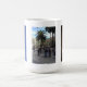 Tasse de souvenir de Barcelone, avec des photos de la statue de Columbus, de la plaza vraie, et du château de Montjuic.
