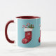 Mug Bas de Noël rouge sur bleu avec nom personnalisé
