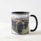 Trois Angus regardent la caméra avec un troupeau de moutons et de chèvres dans l'arrière - plan. Cette scène de ranch est une photographie modifiée pour prendre un aspect artistique peint. Utilisez la fonction personnaliser pour ajouter le texte de votre choix.