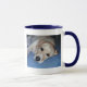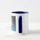 Tasse de café jaune de laboratoire avec la poignée et la jante bleues. L'étiquette de Copyright là-dessus le dos ainsi ne touche pas à l'image.
