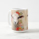 Une belle tasse à café avec une loutre entourée de fleurs.