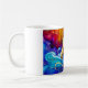 Beau cheval Palomino avec crinière colorée sur un arrière - plan arc-en-ciel tourbillonnant. Un art numérique tasse à café fait avec logiciel de rendu d'IA.