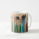 Photo d'une rangée de pinceaux colorés et variés. Image des deux côtés de la tasse.