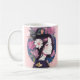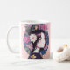 Mug dans un portrait de style anime d'une belle fille, couronné de fleurs rose et blanche douce