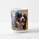 Ce joli chien de montagne bernois a l'air si heureux de courir à travers des fleurs colorées.