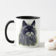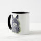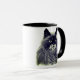 Tasse à café un noir, tandis que et portrait gris d'un beau chat perse
