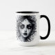Belle Mug Gothique Femme. © Dark Heart Desires. Un beau visage de femme gothique en noir et blanc est sur cette tasse.
