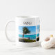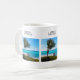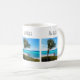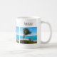 Un mug avec une photographie panoramique. Un océan bleu clair avec une plage de sable blanc.