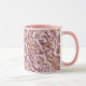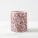Un motif floral vibrant présente de grandes fleurs roses poussiéreuses dressées contre des feuilles délicats. Chaque fleur présente des pétales détaillés et un centre riche et orné, créant un sentiment de profondeur et de mouvement