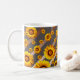 Mug Belles fleurs jaunes sur gris, rayures marron