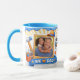 Celebrate your number one dad with this "My Awesome Dad" Photo Collage Mugs. Featuring a vibrant blue and yellow color scheme, this design is perfect for Father's Day or any occasion to show your appreciation. The playful graphics include a crown, thumbs up, stars, and a shield, all proclaiming your dad is the best. Add your own custom text to make it even more special! This mug is sure to bring a smile to his face every morning.