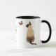 Un chat siamois regarde un papillon Monarque orange tandis qu'il passe sur cette mignonne tasse à café. L'image est imprimée sur les deux côtés, avec le texte noir au milieu qui dit "Laissez LIFE vous INTRIGUE". Votre nom est en script en bas. Tout le texte peut être customisé, vous pouvez donc le modifier à tout ce que vous préférez.