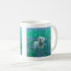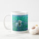 Mug avec dessin à la main d'une frise de bichon dans un champ de bleuets. Oeuvre : Crayon couleur. Copyright : Dominic A. White. Tous droits réservés.