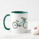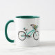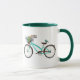 Mug Bicycle With Bird and Flower Basket Turquoise Blue