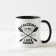 Détendez-vous pour le week-end avec cette tasse personnalisée. Le design présente "Welcome to the Lake House" en caractères noirs rustiques avec une illustration de corde et deux avirons croisés. Customisez avec l'année où vous avez commencé votre vie au lac! Un cadeau idéal pour les nouveaux propriétaires ou les hôtes de week-end.