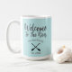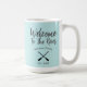 Cette mignonne tasse à café de maison de rivière a un message de bienvenue à la rivière que vous pouvez modifier. Customisez-le avec votre nom de famille ou un message, tout le texte de la conception est personnalisable. Accueillez les visiteurs avec une tasse de café du matin qui peut être customisée avec votre nom et votre adresse en utilisant l'outil d'édition pour la personnaliser.