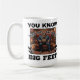 Cette image fantaisiste présente le légendaire Bigfoot confortablement installé dans un fauteuil rouge orné. Avec ses grands pieds bien en évidence, le décor est installé dans une salle cosy ornée de rayonnages, d'une cheminée et de lampes. La superposition de texte ludique dit : "VOUS SAVEZ CE QU'ILS DISENT SUR LES GRANDS PIEDS", ajoutant une touche humoristique au visuel déjà divertissant. Parfait pour les amateurs d'humour énigmatique et de décoration ludique.