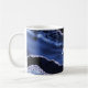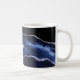 Midnight blue marble, lined with silver glitter, on a black background makes an eye-catching and dramatic mug that's sure to be a favorite.