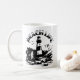 Phare Beach life, palmiers et dauphins noir et blanc tasse à café graphique.