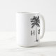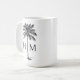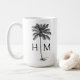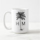 This coastal inspired monogrammed ceramic mug features a preppy black palm palmetto tree on white with a monogram that you can personalize with your choice of initials on each side. Great for personalized gift bags and party favors.