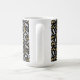 Black and gold monogram mug featuring conifer tree branches, cones and greenery. Easily personalize this mug to create a unique custom gift for your family, friends or yourself.